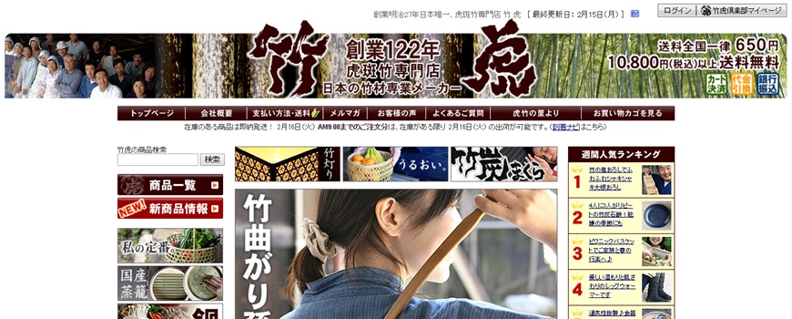 メディア化を推進したという4代目社長の個性が爆発したサイトで、古風な商品を扱いながらもユニークな宣伝方法で注目を集め、ユニクロなどの大手企業ともコラボレーションしています。
